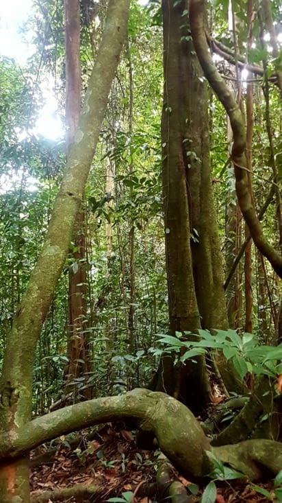 Le lendemain, nous sommes allés à une cascade dans la jungle . On a marché 3h dans la forêt. Les arbres étaient immenses et il faisait chaud. On s'est baigné et Gabrielle a eu une sangsue ! Papa l'a vite arrachée !
