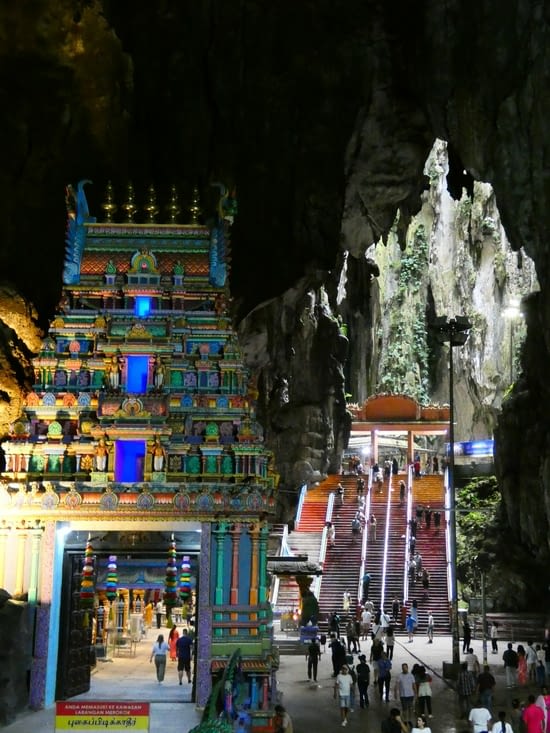 Une des attractions de Kuala Lumpur se situe en dehors du centre-ville, il s’agit des grottes de Batu. Ces grottes aménagées en temples sont le plus gros sanctuaire hindou au monde en dehors de l’Inde, et une énorme statue de Murugan (dieu du panthéon hindou) de plus de 40 mètres marque l’entrée du site. Il faut grimper 242 marches pour accéder à la grotte principale où sont disséminés pleins de petits lieux de culte, le tout entouré par de nombreux macaques affamés.
