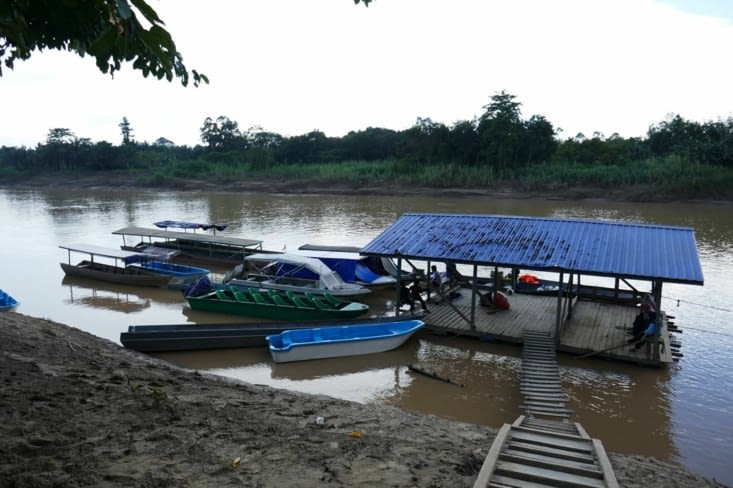 Départ pour Sandakan avec l'EXPRESS BUS qui s'est arrêté très souvent pour prendre des personnes sur la route et pour refroidir le moteur qui surchauffait. Même le bus parti 1h30 après nous nous a même rattrapés. Bref, plus de 6 heures de trajet ! Le bus nous arrête au milieu de nulle part, nous devons marcher 500m pour rejoindre la case de l'oncle Tam, là, nous avons réservé pour partir en expédition 3 jours dans la jungle. Il fait une chaleur à crever. Est-ce cette chaleur, la fatigue du voyage ? mais notre Maelou a un coup de blues, pleure le soir et veut rentrer à la maison. Il nous dit qu'on ne lui a pas demandé son avis quand nous avons décidé de partir....