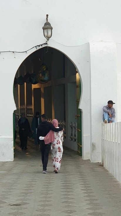 A ma gauche, un pied posé sur la moquette bordeaux de ce qui ressemble à un immense salon franco-marocain, j'observe la vie du bar-cafeteria à la « mode » marocaine. Nus pieds, djellabas, pyjamas, couvertures se côtoient dans un immense brouhaha. L'arabe, le français, l'anglais, l’espagnol ondoient jusque dans mes tympans au milieu de la télévision et des portables allumés, ponctués ici et là de musiques arabes en sourdine et de l'appel à la prière qui jaillit tout droit du grand écran.