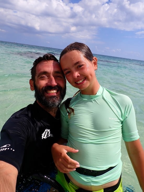 Et voilà la dernière journée à la plage, dernière plongée pour tous, sauf Paul qui n'a pas du tout eu envie. Il s'est baignée mais n'a pas voulu plonger. Paul et moi on a beaucoup joué a construire dans le sable c'est trop bien !