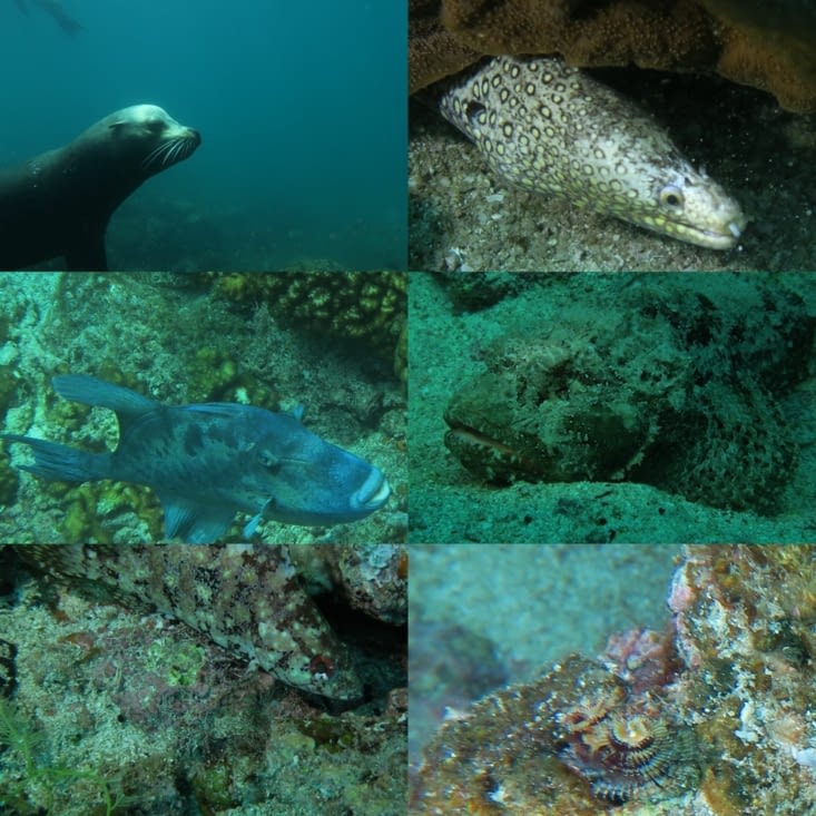 Pour la seconde par contre on se met à l’eau à quelques dizaines de mètres d’un groupe de lions de mer qui s’amuse et prend le soleil. On espère qu’ils s’approcheront de nous.