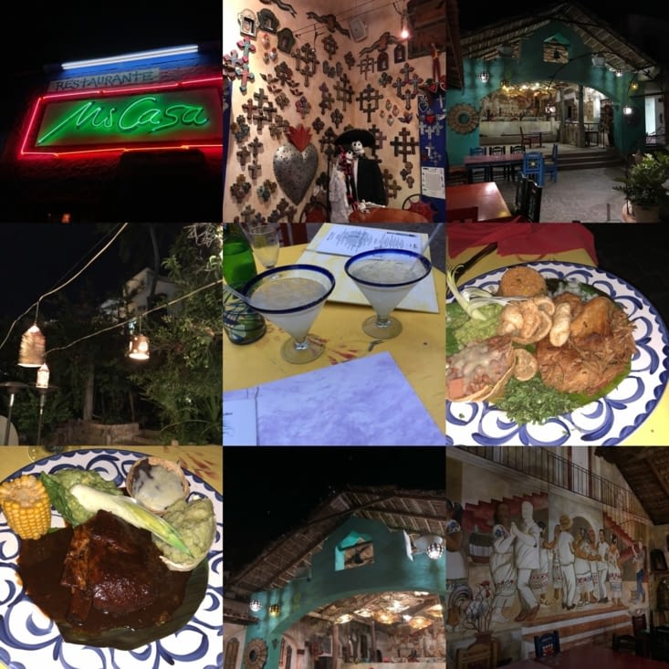 Le soir nous allons dans endroit absolument fou ! Il y a au moins 5 salles différentes de restaurant et il y a plein de petites alcôves avec des articles mexicains traditionnels de tous genres. On aurait envie de prendre plein de choses.... maus en avion pas possible ! Soit c’est trop fragile soit c’est trop gros !