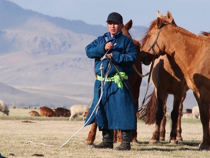 Ces familles nomades de Mongolie se déplacent généralement quatre fois par an et emmènent avec elles leurs troupeaux et leurs yourtes. En hiver, où la température descend sous les -40°c, les nomades se déplacent jusqu’à un camp d’hiver judicieusement choisi qui leur permettra d’être à l’abris des vents forts. Chaque saison à son camp, sélectionné pour l’abondance d’herbes ou la qualité de son pâturage.
