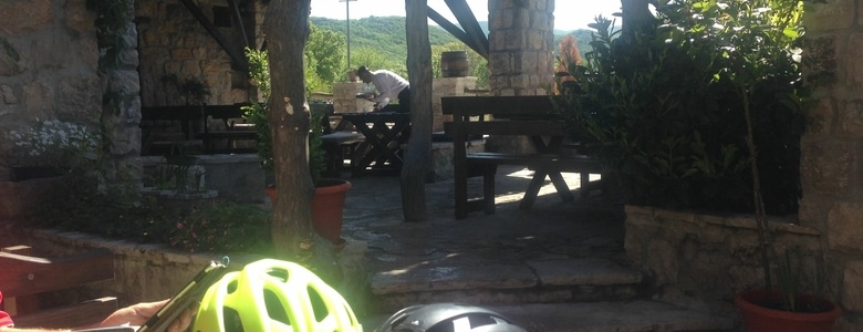 Les montées n'ont plus de secrets pour nous, en quittant Trebinje, on est tout de suite au parfum! Il n'y a pas trop de circulation, on est sur la route en direction d'Herceg Novi. Un peu de réconfort après la montée, une auberge nous tend les bras au milieu de nulle part, bière, café turc, apple pie et cadre magnifique !