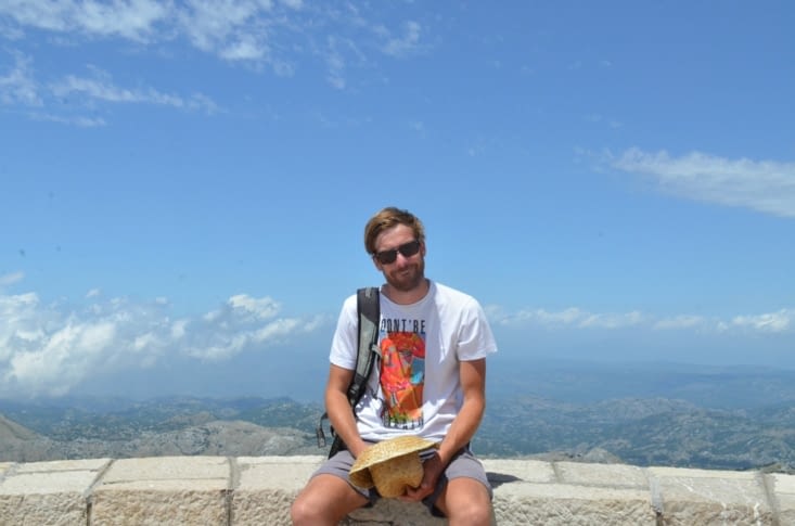 Ce matin, départ pour Kotor, sur la côte monténégrine. 1h30 de trajet dans un paysage aussi aride que le désert. Plusieurs pauses pour monter jusqu'au parc national de Lovčen. Mais le panorama vaut clairement le détour... 30mn de marche à pied, Pour observer le cirque de montagne qui borde autant la mer que l'arrière pays. Et puis, on y aperçoit les lagons de mer où se niche calmement la ville de Kotor. Le sommet n'est pas seulement un point de vue, C'est aussi une symbolique du pays. Le mausolée de Petar II Petrović-Njegoš y trône. Une personne d'importance dans l'histoire du pays. Le mausolée est magistral, composé d'une structure entièrement en granit taillé, soutenu par deux statues. En entrant par le porche, on découvre alors une statue de marbre bleu-gris, représentant le personnage, dominé par un aigle. Le sous-sol du bâtiment cache la crypte, Dans laquelle repose le tombeau de marbre blanc.Le chemin de crête qui serpente nous amène à découvrir un autre point de vue, exceptionnel aussi. C'est ici que nous photographierons un couple de cinquentenaires.