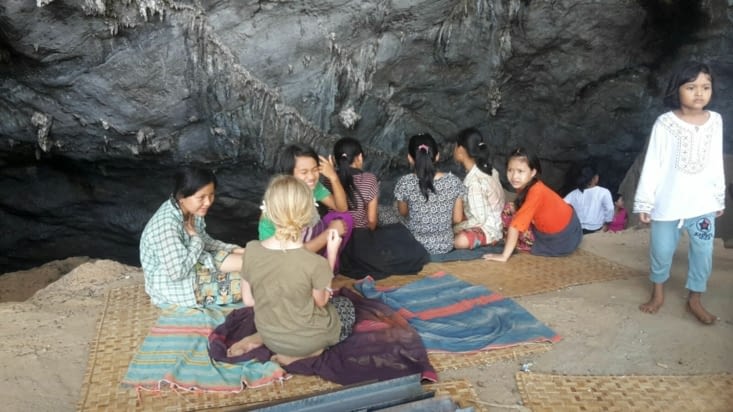Si en arrivant les filles se sont demandées ce qu'on faisait là, elles ont adoré la journée du lendemain en tuk tuk dans la campagne. Elles en reparlent encore. Les grottes, le tuk tuk sur les chemins de terre , les maisons sur pilotis et les rizières ( très seches) à perte de vue mais surtout nos rencontres de la journée car nous étions 6.