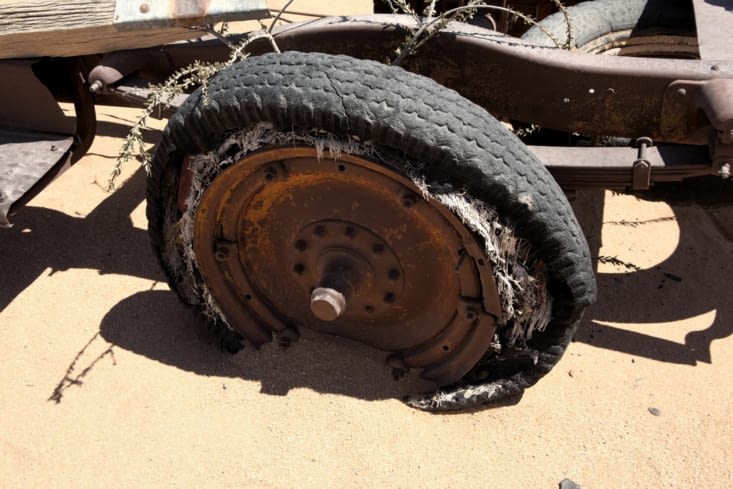 Dans notre périple, nous avons vue des pneus et des gentes complètement éclatés. La solution ? ne pas roulé sous gonflé, ni roulé crevé et changer la roue rapidement, sinon ben, c'est la carte bleue qui va chauffer.