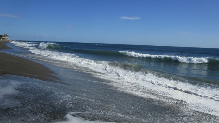 Une journée à rien faire. Nous avons une québécoise seul qui cherche de la compagnie. Franchement elle est accaparante. Elle renchérit tout le temps ce que l'on dit et coupe souvent nos discussions. Moi qui pensait pouvoir enfin lire, j'ai lu 15 pages en 2 jours. Elle est quand même gentille. Réjean lui tombe en grande conversation avec un Français/Breton qui habite au Nicaragua. On fait de la piscine car on évite les baignades en mer car il y a eu plusieurs noyade ici. Les courants de fonds sont violent ici. On termine la soirée dans un resto tenu par des polonais et c'est un super bon souper et hop c’est le dodo. A demain.