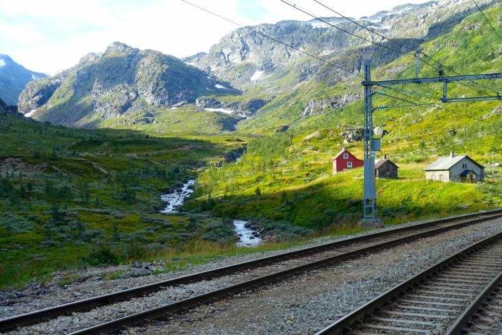 Cette ligne est tout bonnement magnifique, particulièrement entre Geido et Finse. Cette ligne ferroviaire, c'est comme être au cinéma : le confort de bons sièges, une allure stable, au milieu de décors montagneux superbes. Nous avons eu de la chance, il faisait (enfin) très beau.