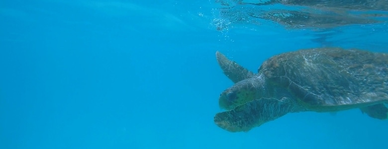 Première étape : nous nous rendons sur des fonds blancs où nous avons pu aller nager avec une tortue grosse tête. Elle devait être sacrément âgée vue sa taille. Apparement elle est la star du coin et souvent les personnes en excursions comme nous vont à sa rencontre.