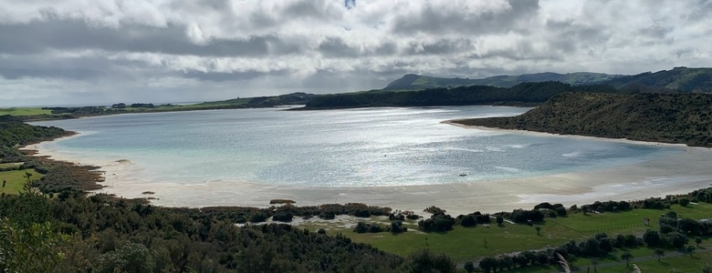 C'est avec Ejay qu'on est allé au lac Kaiiwi complètement vide de monde. Le sable était presque blanc et l'eau transparente, il aurait fallu une quinzaine de degrés en plus pour s'y baigner. Petite rando furtive dans les hauteurs pour atteindre un point de vue qui nous laisse en joie, un câlin plein d'énergie à un arbre mort pour lui apporter réconfort et tendresse selon culture Maori. Ya plus qu'à y retourner pour voir s'il a poussé. La descente était semé d'embûches, entre la boue qui patine et les feuillages qui piquent, mais on y est parvenue grâce à nos précautions. Dis donc, ça rend plus sage la "trentaine"..