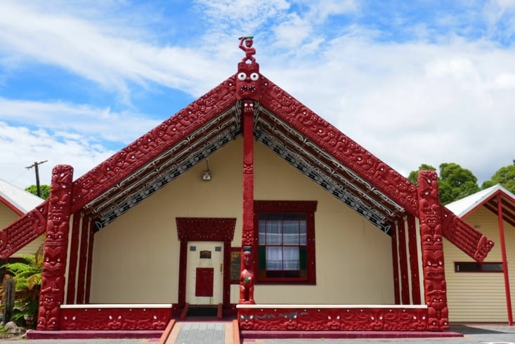 On y va directement de Wellington. Une tempête étant annoncée, on préfère reporter notre grande randonnée du Tongariro. Rotorura est une ville avec une grande activité géothermique : même en ville ça sent le souffre ! Les parcs en ville fument, les étangs semblent en ébullition. C'est aussi la région de la culture Maori. Bref, dans cette ile c'est le coin à faire.