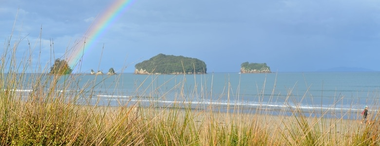 La première trouvée nous aura permis de vidanger mais il n’y avait pas d’eau potable... Try again !Nous prenons donc la direction de Tairua, apparemment là bas nous devrions trouver tout ce dont nous avons besoin. Effectivement, après une bonne demi heure de route nous voilà arrivés et le plein d’eau de fait. Nous découvrons la plage de Tairua qui est jolie, déserte et surtout avec des belles vagues qui déroulent ! ?Ahhhh l’appel du surf est lancé ! Pour se donner un avant goût de l’eau, nous irons tremper nos pieds et là.... ahhhhh ça pince ! L’eau doit être autour des 14°c... ça nous refroidit un peu...Bon apparemment il y a des spots de surfs sympas un peu plus bas, donc nous descendrons du côté de Whangamata où nous allons aussi découvrir de jolies plages et de petites conditions de surf plutôt sympathiques.