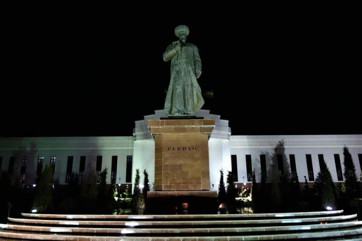 Après le goûter nous partons faire un tour dans la ville. Il fait froid mais nous passons un bon moment. En face du parlement du Karakalpakistan on peut voir la statue de Berdakh qui est un poète local très aimé qui vécut au 19ème siècle. Avant l'indépendance il y a 25 ans, il y avait là la statue de Lénine.