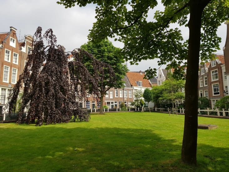 Apres cette visite plus qu'intéressante, nous avons découvert un endroit hors du temps et déconnecté de la ville, le Beguinage. C'est un peu un comme une île dans la ville, un jardin complètement entouré de maisons, on y entre par une porte qui donne sur un passage, qui lui même débouche dans le jardin.