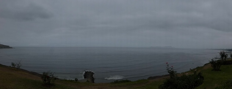 Réveil 5h45, frais comme des tomates farcies. Pour le premier jour, ce sera repérage des alentours et mangeage de fruits. Barranco est un petit quartier “sur la côte”. La côte, à Lima, c'est particulier. Il y a le bord de l'eau, le long duquel passe une magnifique voie rapide de deux fois trois voies, avec la masse de bruit et de pollution qu'on peut imaginer. Il y a ensuite le bord de colline. Toutes les constructions sont implantées quarante mètres au-dessus de l'eau, formant une belle vague de béton face au Pacifique. C'est un choix! Mais en termes de mise en valeur du littoral, pas sûr que ce soit le bon. On tire jusqu'à Chorillos, le quartier au sud de Barranco. Définitivement, le littoral est abandonné, mais on comprend mieux quand on voit les panneaux “en cas de tsunami, se réfugier dans les zones prévues à cet effet”... Plus à l'intérieur, Chorillos est un mélange de petits bâtis posés à qui mieux mieux et de gated communities, ces pans entiers de quartiers entourés de barbelés et dans lesquels on entre seulement suite à l'accord des gardes de l'entrée. Grande avenue, de la poussière et un ciel si bas qu'il faudrait le balayer…