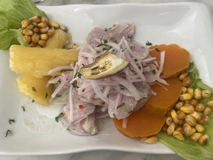 On prend un bus puis un peu moins de 5h après, nous sommes arrivés à destination. Notre hôte et sa fille sont absolument adorables. Après une longue pause toilette de Benjamin, on mange à proximité. Ce sera l’occasion de gouter à plusieurs spécialités : papas a la huancaina, pato guisado et chicha morada. Agathe, elle, fait la découverte de deux cocktails : le pisco sour et le chilcano. Autant vous dire qu’elle était joyeuse les heures qui ont suivies…