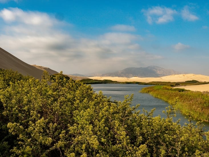 On rentre en ville pour manger et rendre le scooter puis filons vers Bernales où se trouve la Laguna Moron qui est une oasis naturelle. Après 40 minutes de marche, on atteint une sorte de petite lagune bordés de végétation et entourée de dunes de sable. Le lieu n’étant pas encore trop touristique, l’ambiance est paisible. Quelques personnes s’y baignent. Nous, ayant peur de rater les derniers collectivos, ne resterons pas assez à notre goût pour cet endroit hors du temps. La tourista nous aura obligé à concentrer notre journée…