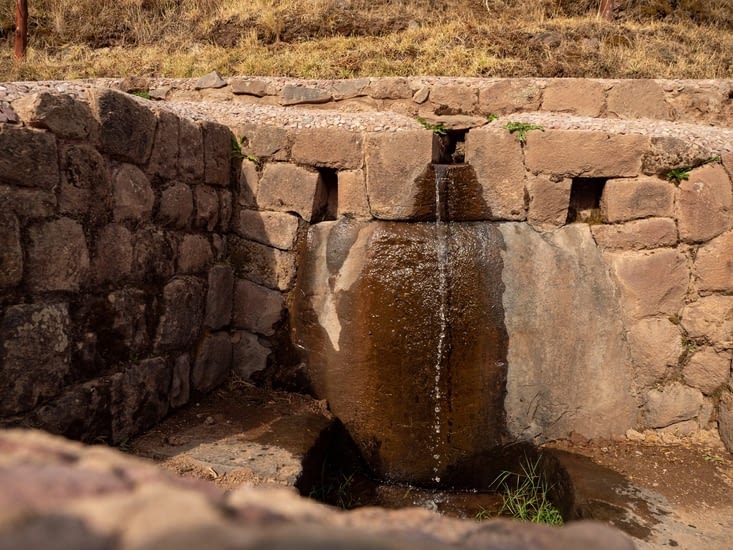 Après un rapide collectivo, nous arrivons à la route qui mènent à ses deux sites. Pour les visiter, c’est soit en agence depuis Cusco pendant un tour rapide de la vallée sacrée soit depuis l’intersection où nous en prenant un taxi collectif. Pas de chance, aucun touriste quand nous arrivons et nous voulons y aller rapidement pour justement éviter un maximum les agences. On négocie donc un taxi et en route d’abord pour les Salinas. Ce sont des « marais salants » à flanc de montagne dont chaque famille possède une parcelle et entretient. Tout le sel est ensuite vendu via une coopérative. Le lieu est grandiose quoique un peu petit à visiter. On reste quelques minutes à profiter du lieu en observant les gens ramasser le sel.
