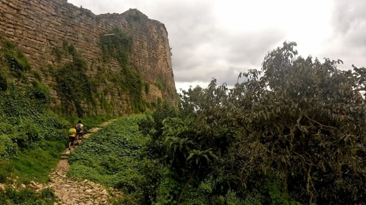 Le lendemain nous sautons sur un petit déjeuner fait sur mesure et sous les premiers rayons du soleil nous entamons la montée. Au fur et à mesure que nous prenons de la hauteur, la vallée se laisse dominer. Nous scrutons le paysage à la recherche de l'immense forteresse mais rien en vue. Des murailles de 20 mètres de haut ce n'est pas si facile à cacher tout de même !!