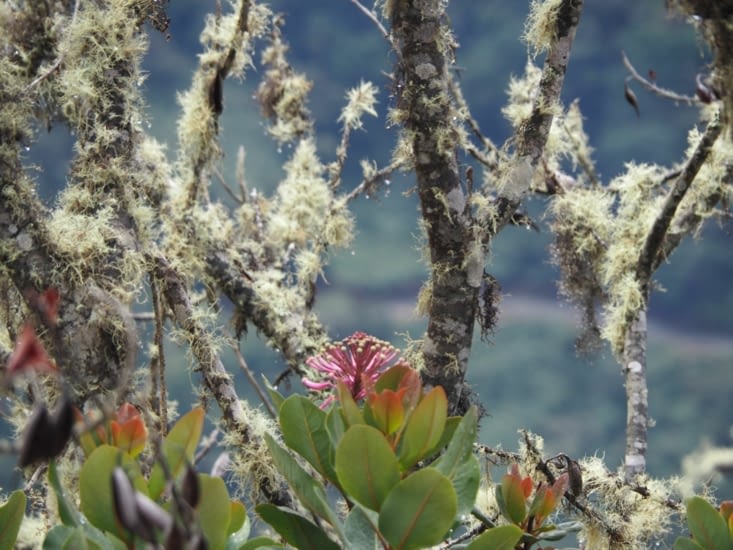 Nous entamons une longue et lente descente sur l'étroite et sinueuse route qui mène aux entrailles de la jungle. Au fil des kilomètres, la végétation change et l'humidité se fait sentir ! En effet, nous descendons aujourd'hui jusqu'à un point situé à 1100m d'altitude, bien ancré dans la jungle.