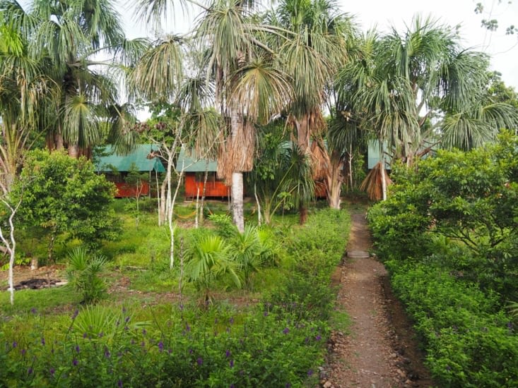 Les bruits diverses et variés des animaux qui nous entourent (grenouilles, insectes, oiseaux…), sont associés à ceux des goutes de pluies qui tintent sur les immenses feuilles tropicales, et nous bercent en signe de bienvenue pour notre première nuit dans la jungle… espérons que les bourdonnements des attendus moustiques ne se joignent finalement pas à la fête…