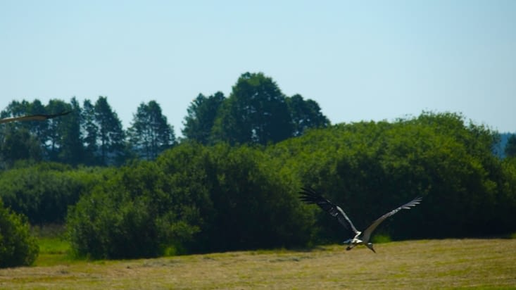 Rien de tel pour démarrer une journée qu'une bonne suée sur une piste ensablée où il ne faut surtout pas s'arrêter sinon vous ne repartez plus. Ce slalom en force et en nage a duré 4km 800 : une paille, qui nous a valu une forte engueulade. Qui plus est, Naviki s"en mèle, il perd le nord, nous rebroussons chemin plusieurs fois, tout pour plaire!! MAIS, MAIS, MAIS, c'est sans compter avec la PRO- VIE- DANSE. Il est 15 h nous n'avons rien avalé depuis le merdique petit déjeuner de 8h. Nous avons soif, faim, un semblant de hameau se présente . Trois jeunes stagnent devant une petite devanture, ils ont des boissons dans les mains, je demande si l'on peut acheter à boire: dak dak, le oui polonais. Je rentre, une épicerie de poupée comme on en raffole gamin mais aussi cyclotouriste. José me rejoint . Nous prenons bière, eau, gâteaux au détail .La dame a un sourire magnifique, j'aurais bien aimé flâner dans son bazar à envies mais la route est trop longue ce jour. Lorsque nous retournons à nos vélos, une escorte de jeunes les explore, nous grignotons et buvons en leur compagnie. Je rapporte la bouteille en verre à l'épicière et c'est alors qu'elle me dit d'attendre avec sa main, elle revient avec une assiette de pâtes et de ses yeux rieurs me dit : dak dak?? Sans hésiter je répond Dak. Je sors prévenir José qui me grommelle que les km nous attendent mais devant ma ferme décision, il s'incline. Oh, jolie dame, dotée d'une grâce exceptionnelle!! Elle nous fait rentrer Pégase et Gabriel dans son jardin à l'abri des regards puis nous invite dans sa cuisine, nous sert en tourbillonnant comme une princesse deux assiettées de son délicieux ragout de pâtes , la clochette de son commerce ne tarde pas à sonner, elle nous engage à manger mais nous l'attendons. Elle revient toute guillerette, nous parle, parle, combien de choses qui paraissent si jolies!!! Je me montre du doigt : Geneviève, je touche José : José, et vous?? Il faudra le faire plusieurs fois avant que le Dak dak : Barbara clame t'elle toute contente d'avoir compris; Je me lève pour l'embrasser elle sent bon, un vrai bonheur. Je joins mes mains pour la remercier de son plat cuisiné, elle fait signe de m'asseoir, dépose une coupe de fraises , une autre de biscuits, elle nous dit de manger et ses yeux rieurs nous incitent à piquer le joli fruit, puis elle tourbillonne en soulevant à peine sa robe comme une gamine de 15ans , s'en va dans sa boutique et en revient avec une énorme brioche qu'elle coupe en deux morceaux et nous les offre dans une assiette avec une joie tellement éclatante que nous n'osons refuser. Kava? dak dak, Ses yeux donnent envie de dire oui à tout. Elle nous montrera ses poules, en délogera certaines pour nous déposer les oeufs encore tout chauds dans nos mains. Nous avons beau lui expliquer que nous ne pouvons les emporter : dak dak répond elle toute enjouée. Nous irons jusque dans son champ pour voir ses deux vaches et son petit veau. Son potager et ses herbes fraiches, toute sa fortune est là, autour d'elle. Elle ne connait que Varsovie à cause de l'hôpital où son mari est mort il y a 7ans, nous avons vu sa photo et ses yeux se sont assombris , celle de sa fille et de ses deux petits enfants, ils ont repris de l'éclat . Je pensais qu'il fallait qu'on se quitte parce que la route était encore longue, alors j'ai joins mes mains sur mon coeur comme une prière pour l'immense reconnaissance, je l'ai embrassée de tout mon coeur en lui disant à l'oreille : que Dieu vous protège, elle m'a sourit . J'étais pétrie de chagrin de laisser une grâce pareille et c'est seulement après les nombreux pouet pouet, que mes larmes ont brulé mes joues. MERCI belle Barbara, nous avons connu aujourd'hui l'incarnation de la grâce.