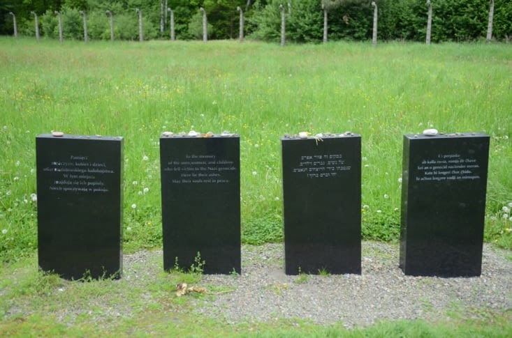 Nous sommes arrivés sur le site d'Auschwitz ; c'est là que se trouve le point d'information pour les deux camps. Le camp I étant beaucoup petit et comportant des expositions dans les baraquements, il est réservé aux visites guidées jusqu'à 16h. Du coup, nous commençons par Birkenau. Le site est absolument immense ; nous avons mis 2h à faire tout le tour! Quasiment tous les baraquements sont détruits, il ne reste que leurs emplacements au sol. Il en est de même pour les crématoriums qui furent dynamités par les nazis juste avant l'arrivée des Alliés. Pour toute légende à cet immense cimetière à ciel ouvert, des panneaux en hommage aux victimes et des brèves explications de certains lieux avec des photos d'époque prises par les SS. Bien que les bâtiments soient en ruine, nous nous imaginons très bien le calvaire et la violence des événements qui se sont déroulés ici. Pour bien se rendre compte de cette horreur, il faut vivre cette visite que je conseille à chacun!
