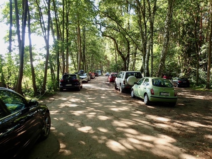 Ni trairas la lastajn kilometrojn, kiuj disigas nin de la kampadejo laŭ arbara vojo paralela al la maro. Ne estas tiel facile bicikli tie: unuflanke, multaj aŭtoj veturas tien kaj rapide, prenas aŭ forlasas parkejon, aliflanke la trako estas plena de radkavoj. Parizo-Dakaro en Pollando, ni ne pensus pri ĝi.