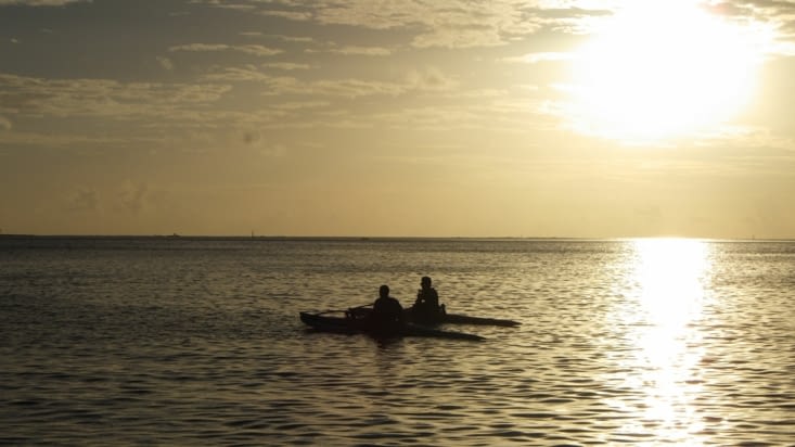 On profite au passage du spectacle des rameurs qui s’entraînent pour les futures compétitions de Va'a.