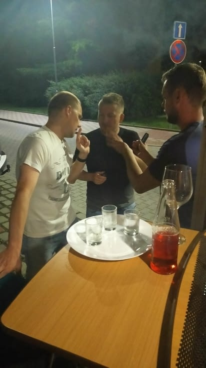 La suite de cette fin de journée est allée très très très vite... Il nous a semblé qu'il y avait une sorte de soirée au bar, sûrement un évènement de famille ou des amis habitués à se retrouver ici. Et un des hommes présents est sorti du bar plusieurs fois pour fumer dehors, regardant dans notre direction à chaque fois puisque nous étions porte latérale grande ouverte, en train de cuisiner de la viande. À un moment, la curiosité de cet immense gaillard barbu fût la plus forte et il a commencé à engager la conversation. Son anglais laissant à désirer, et mimer ''voyager en Europe jusqu'en Suède'' étant assez délicat, il est parti chercher un de ses amis. Ce qui m'a laissé le temps d'initialiser mon traducteur de poche et enfin découvrir ce qu'il valait.