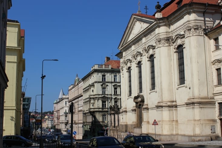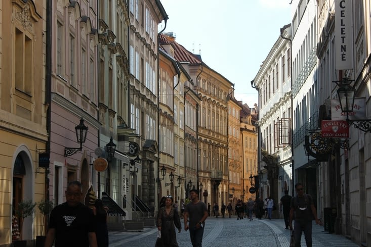 Notre promenade sous un superbe ciel bleu nous a mené jusqu'à la place principale de la ville, en passant au milieu d'œuvres de rue, par le quartier juif et la maison la plus étroite de Prague. Cette grande place est superbe et abrite, entre autres, l'hôtel de ville de la Vielle Ville, l'horloge astronomique (installation des plus fascinantes!), plusieurs galleries d'art, une église gothique de la ville ainsi que l'église Saint Nicolas.