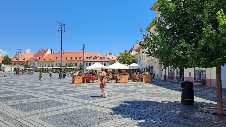 Nous pouvons enfin commencer la visite de Sibiu ville qui se trouve au pied des Carpates. Le centre historique se visite à pied. C'est une ville magnifique. Tout d'abord il y a les 3 belles places qui sont imbriquées entre elles. Elles sont vraiment superbes!