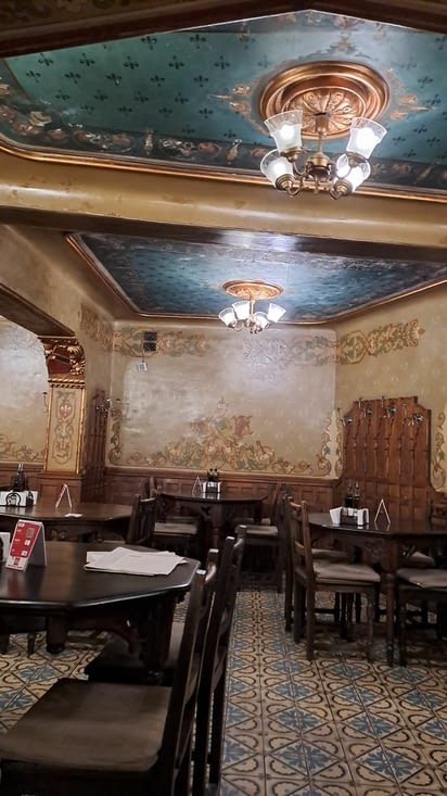 Une fois installé nous parcourons la cité:, Nous passons devant l'ancien Palais Princièr en pleine restauration dont on ne peut appercevoir qu'un grand amoncellement de briques. Nous parcourons la strada Lipscani et les rues voisines toutes pavées. L'atmosphère est très touristique avec tous ces bars et restaurants alignés dans ces rues pietonnes. Les belles facades, avec des très beaux balcons, se succedent avec d'autres facades délabrées où en restauration. On s'arrête, passage obligé, à la brasserie CARU BERE, une institution en style Bavarois et Pub Britanique, datant de 1898. Sa construction à été faite en l'honneur du 1er roi du pays d'origine Allemande, le decor vaut le détour.