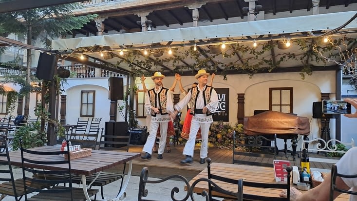 Nous finissons la soirée par le restaurant très connu HANUL LUI MANUC dernière auberge survivante des caravan'serails et reconstruite au debut du 19eme siecle. Pour la petite histoire c'est ici qu'a ete signé en 1912 la paix entre la Russie et la Turquie.