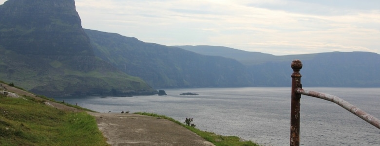 Le réveil est mouvementé, la pluie est battante et les midges sont sanglantes. On décide avec regret de ne pas se lancer dans une randonnée au cœur des "Cuillins Hills", on devine cependant au loin les silhouettes de ces splendides montagnes, sombres et hérissées, perdues dans la brume de ce matin pluvieux. Encore une fois, nous nous faisons la promesse de revenir un jour en Ecosse pour explorer cette chaîne de montagnes à la fois majestueuse et austère. On se lance alors sur la route de Neist Point, le cap le plus à l’ouest de l’île. Le coin est superbe et encore une fois, on se sent peu de choses face à la solitude du lieu : le phare à l’abandon, les hautes falaises et ce vent chargé d'iode qui emmêle les cheveux, tout les ingrédients sont réunis pour faire de ce moment, un moment magique.
