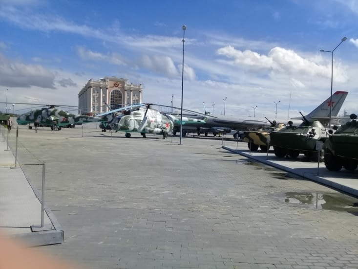 À 25km de notre bivouac nous décidons de voir le musé des armées de la Russie. Impressionnant de voir côte à côte des tanks, des avions, des mitrailleuses et des lances missiles.