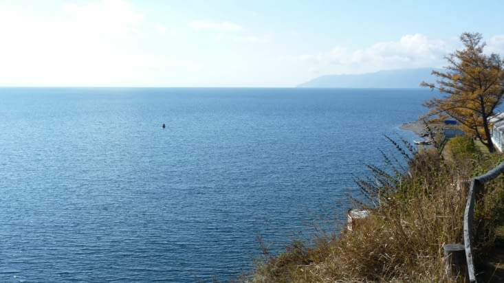 Départ de la gare routière toute les demi-heures, coût du trajet: 131 roubles l'aller. La route est très belle, elle traverse une zone vallonnée, on surplombe des collines boisées qui offrent leurs couleurs automnales, quelques villages avec des maisons en bois. Et voilà le Baikal au détour d'un virage, on le longe pendant quelques km avant d'arriver à Listvyanka.