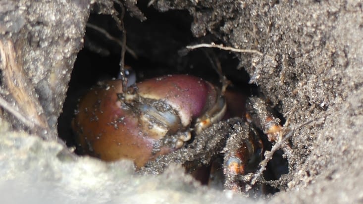Aujourd'hui, petit tour sur une plage accessible uniquement à pieds, à travers la jungle ! Il y avait encore des crabes ! Puis au port de Launay !