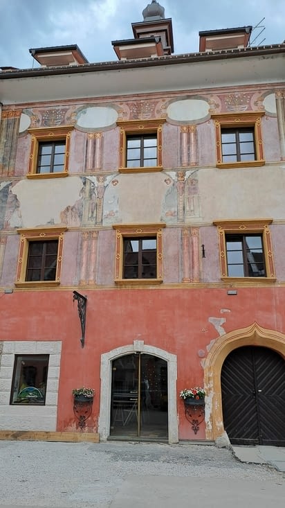 Enfin nous nous arretons, en milieu d'après-midi midi, dans l'ancienne citee médiévale de Skofja Loka. C'est de loin la plus belle visite de la journée. Il y a cependant encore peu de monde dans les rues. Des travaux de rénovation sont en cours. On peut cependant admirer les belles façades et les quelques fresques anciennes sur certaines façades. A noter également l'histoire du pont des Capucins: un eveque est tombé du pont, et mort noye, car son cheval n'a pas voulu s'arrêter et s'est emballe au moment de payer une taxe pour franchir le pont.