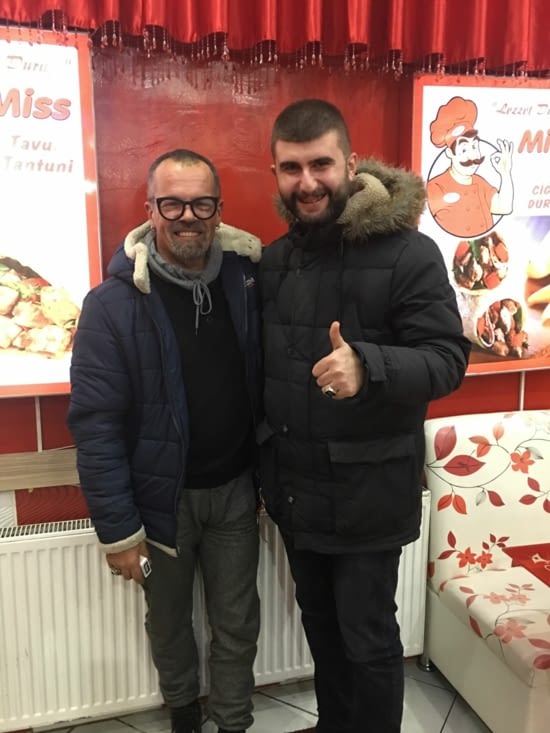 On leur propose un thé Turc dans le « van » car il fait très froid.
