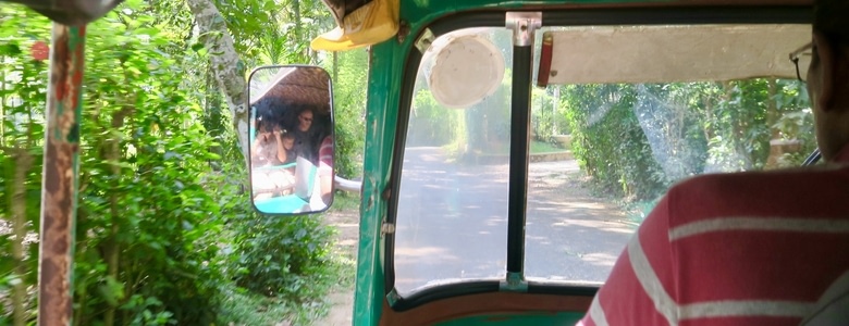 Les côtes du Sri Lanka sont plutôt agitées et il est difficile de se baigner, surtout avec un enfant, mais notre hôte nous conseille la plage de Wijaya, à 15 mn de l’hôtel en tuk-tuk. Inauguration de ce mode de transport typique, aussi joli de l’extérieur que sportif à l’intérieur !