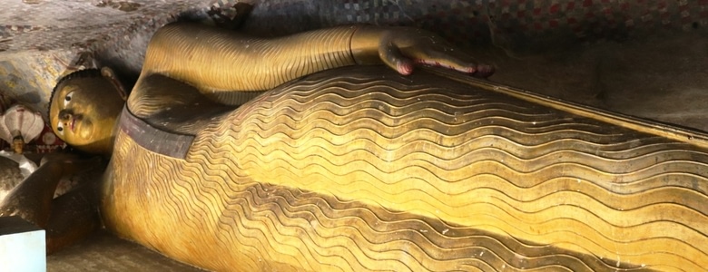 Au pied de la montagne se dresse fièrement un des plus grands Bouddha du Sri Lanka. Le Temple d'Or, autre dénomination de Cave Temple, ne tient pas son nom de ce bouddha doré bien plus récent, mais de la richesse des ornements des 5 grottes.