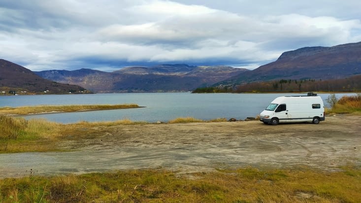 Les prévisions météo des prochains jours n'étaient pas du tout en notre faveur là où nous étions, à Kiruna. Aussi avons-nous décidé de nous rendre à Foldvik en Norvège, situé à seulement 240km de nous! Et nous avons bien fait car cette plage au bord du lac était très sympathique et nous a permis de voir des aurores boréales 2 soirs !