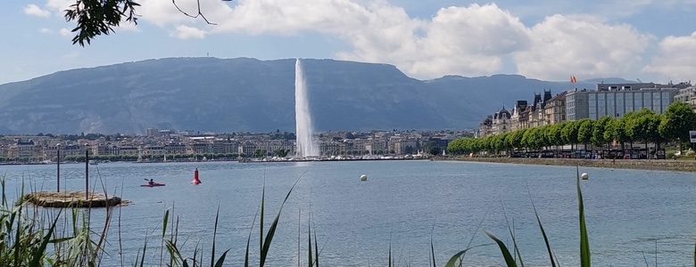 Après une courte promenade, un souper 'lacustre' et une nuit pas terrible sans un hôtel pas terrible, je passe une belle journée, en pentes douces à travers bois, vignes et champs en direction du lac. Flânerie autour de la cathédrale et direction Meyrin, en tram