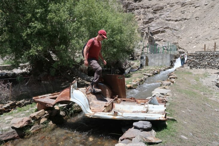 Nous recommandons également la randonnée vers le camp de base du pic Engels. Elle est assez difficile : 10 kilomètres avec 1 400m de dénivelé positif qu'on sent passer surtout au début de l'ascension. Mais les vues, sur le pic et les chaînes de l'Hindu Kush, sont très belles et il semble possible de passer une nuit au camp de base : il y-a une petite maison d'alpage dans laquelle une famille, si elle est là, peut sans doute accueillir et il semble également possible de camper à condition d'avoir des vêtements très chauds.