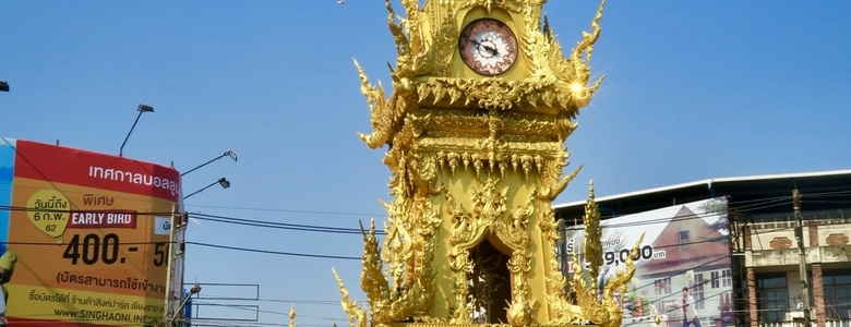 Après 4h de route montagneuse, nous arrivons à Chiang Rai, pour y rester quelques jours. Plus petite que Chiang Mai, moins polluée, moins dense, cette ville se prête bien à des balades à pieds... ce que nous n’avions pas vraiment fait en ville depuis le début de notre voyage...