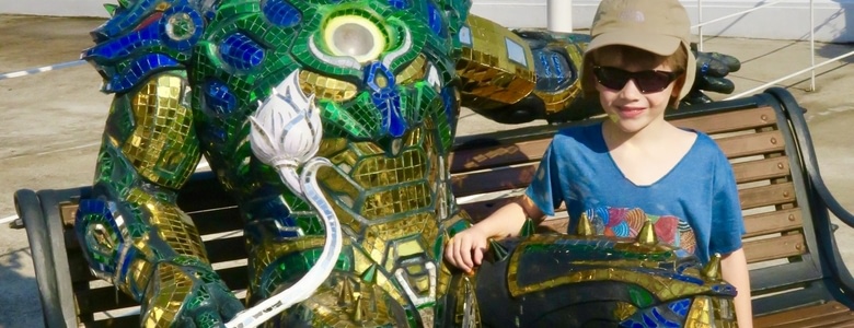 Nous allons découvrir un des temples les plus connus de Thaïlande et pourtant un des plus récents : le Wat Rong Khun, à une vingtaine de km de Chiang Rai.