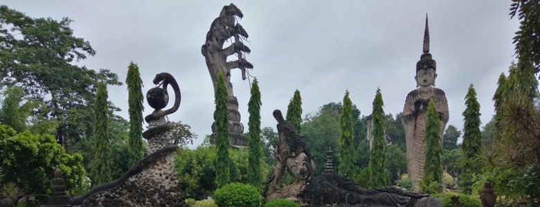 Nous poursuivons notre visite de Nong Khai avec le Sala Kaew Ku, étrange parc de statues édifiées par un mystique où il fait bon se promener.